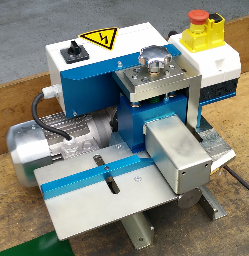 We have two basic Ply Separators (splitting machines) in our program. Our light, portable machine which weights only 20 KG can be used for a splitting depth up to 100 mm where the maximum belt thickness is 5 mm and the knife width is 80 mm. Our bigger version is a stationary machine for a maximum splitting depth of 120 mm, belt thickness (optional) up to 15 mm and a knife width of 80 mm.